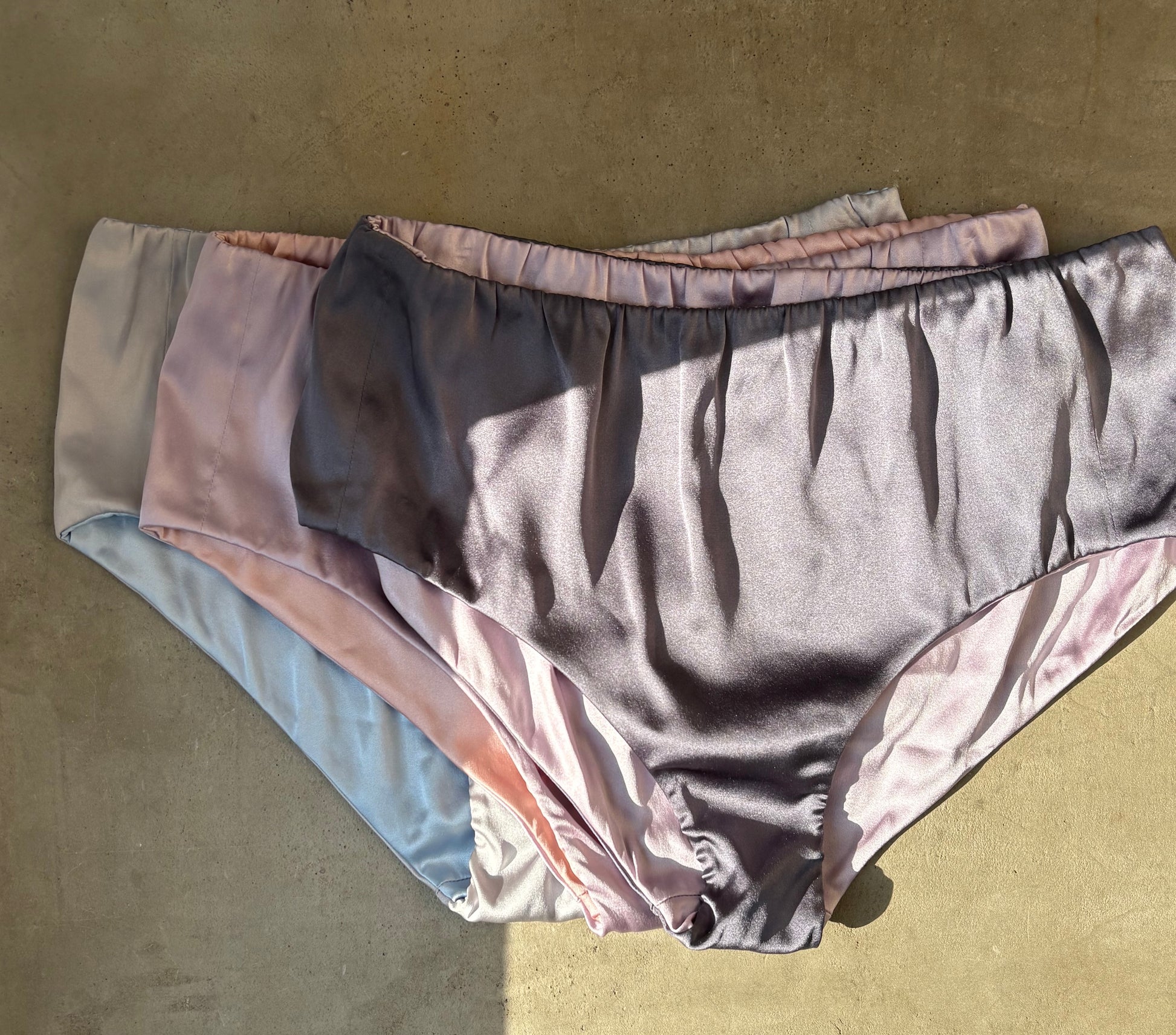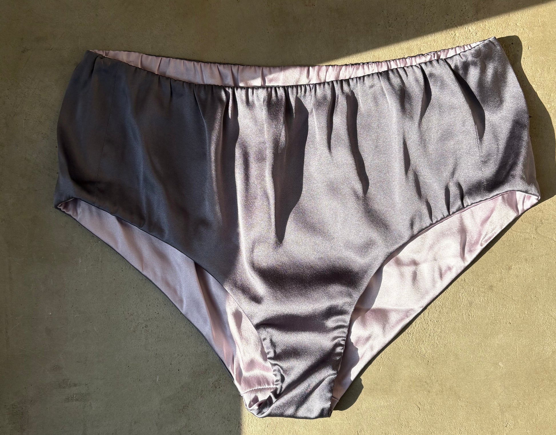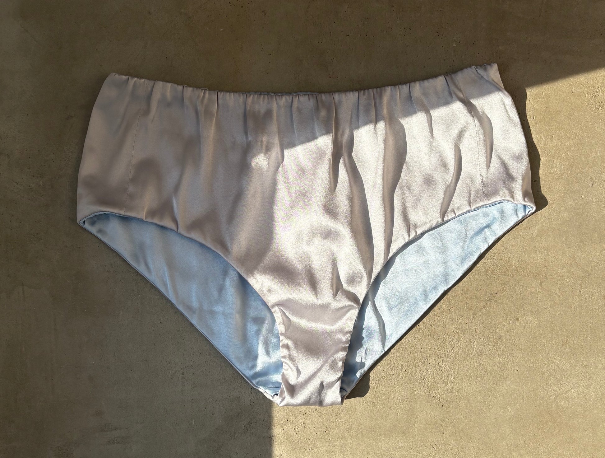 ブラトップ同様、裏(肌側)も全てシルクで包み込むリバーシブル仕様。ウェストや足ぐりのゴムは肌に当たらないデザイン。どんなボトムにも合うベーシックなショーツ。