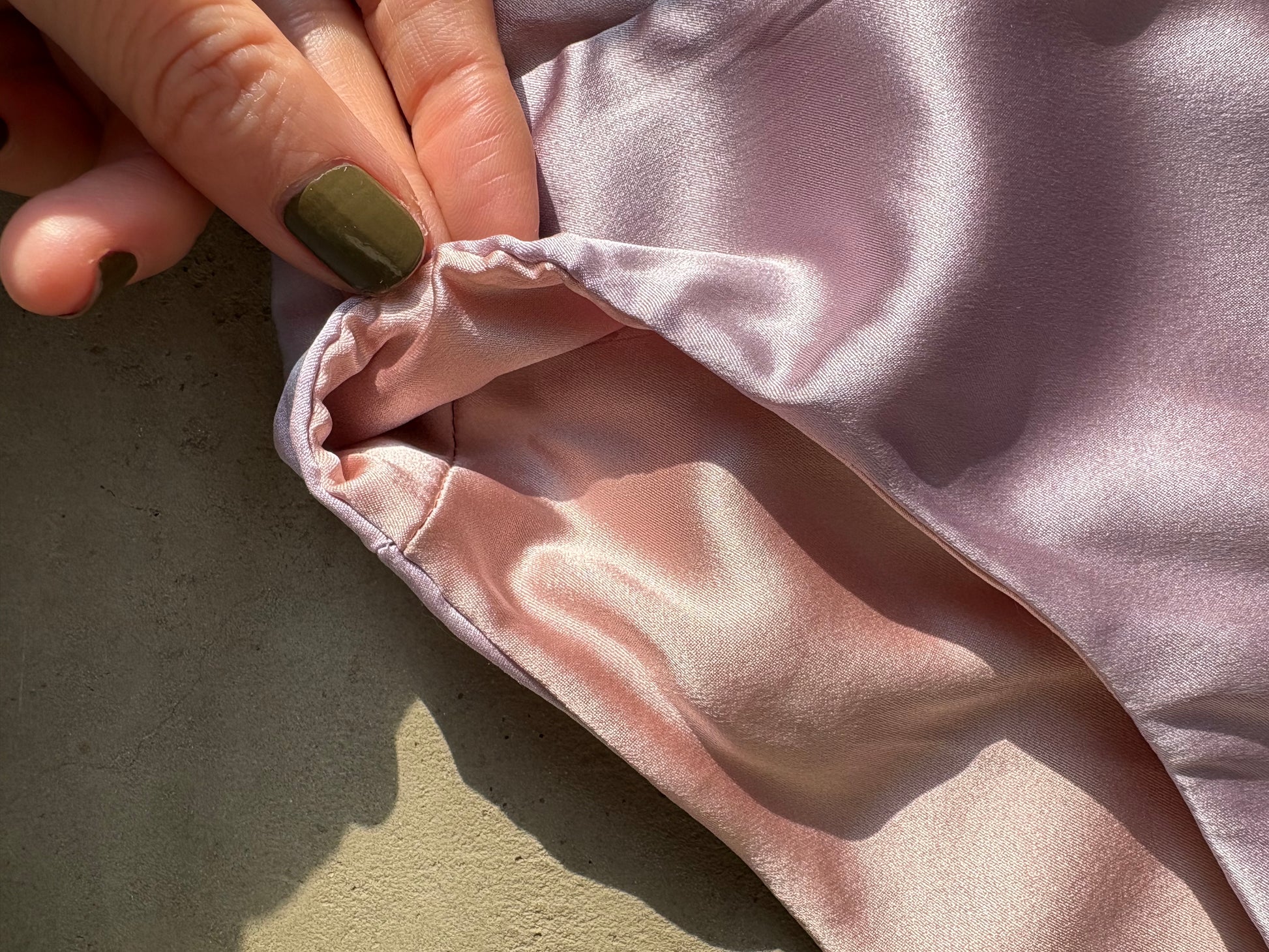 ◆表面と裏面全て19匁のストレッチサテンシルク使用。